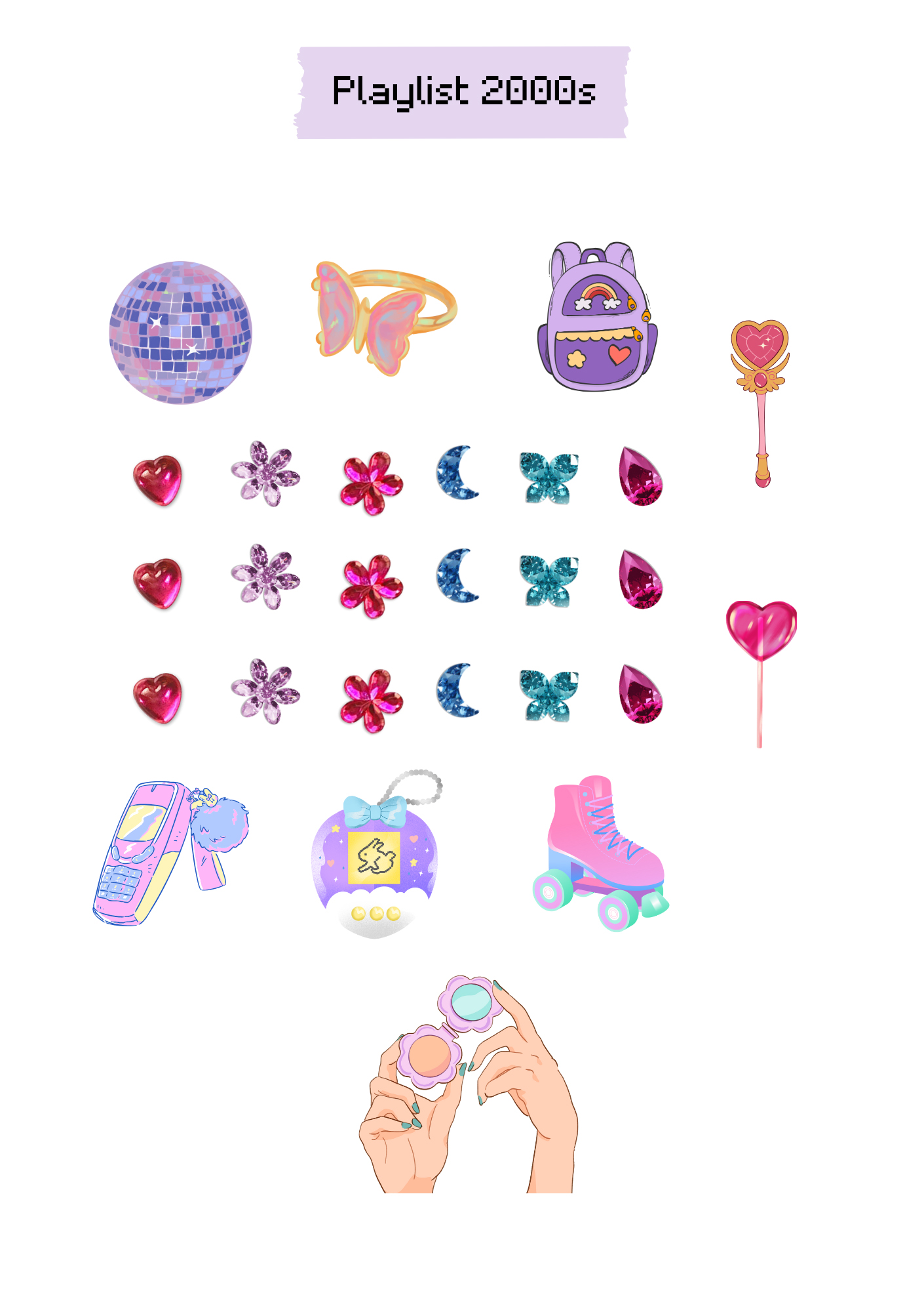Voici les fichiers avec lesquels j’ai créé cette playlist pour mon carnet de journaling. Le tuto se trouve sur mon compte Tiktok Manayin. J’ai simplement utilisé une attache parisienne pour faire tourner la roue de la playlist. Je l’ai faite passer derrière un fond de papier pour journaling, que j’ai collé sur la page de mon carnet. Et bien sûr j’ai créé ces modèles avec l’aide de Canva, il y a des éléments parfaits pour représenter les années 2000 !